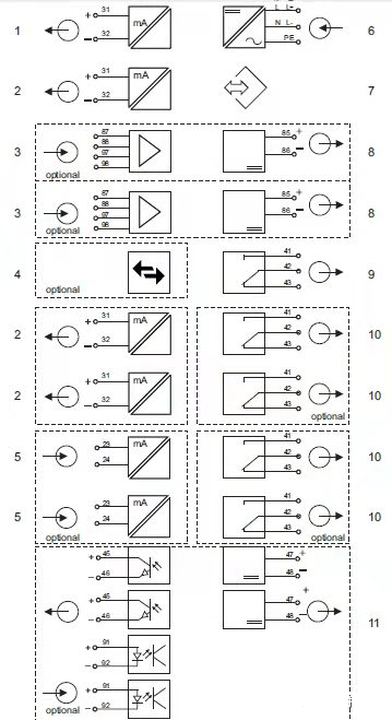 2)4-20mA电流输出正负端分别接到31,32端子。