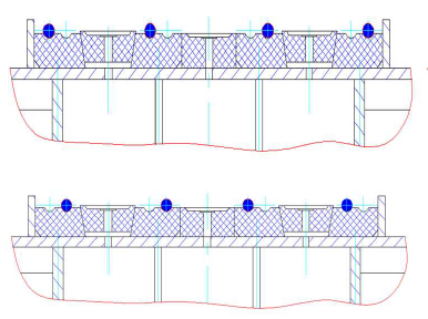 天(导向)轮生产完成后到到用户安装使用,一般会滞留一段时期,此时管路中及轴瓦内在制造厂所加的润滑脂很可能已经变质失效、风干、附着在油管内壁和轴瓦油槽中,甚至形成堵塞,因此在使用前必须对润滑管路及轴瓦进行清洗,保证润滑油路的畅通。清洗时,将煤油等清洗剂通过轮缘上注油孔注入,游动轮轮毂中部设有2-M33×2出油口(此口也可以做注油口使用),清洗完成后用螺塞堵住。