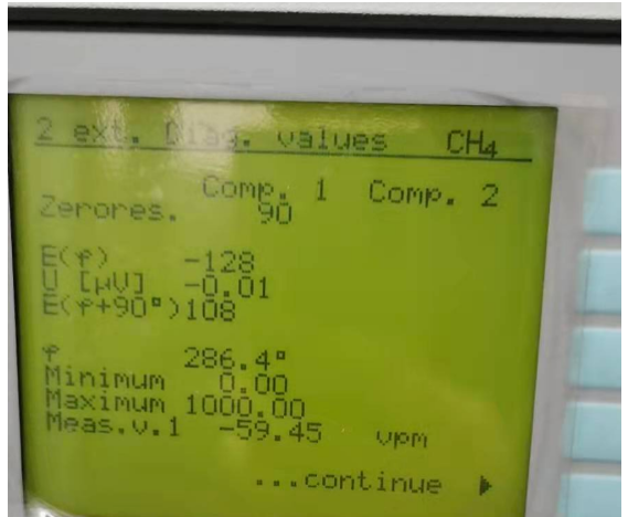 图中E(f)为-128,而正常时应为100000左右,分别通入零点气(高纯氮)和量程气(450ppm甲烷,余氮),数值均无明显变化,判断可能为检测器或光源故障。